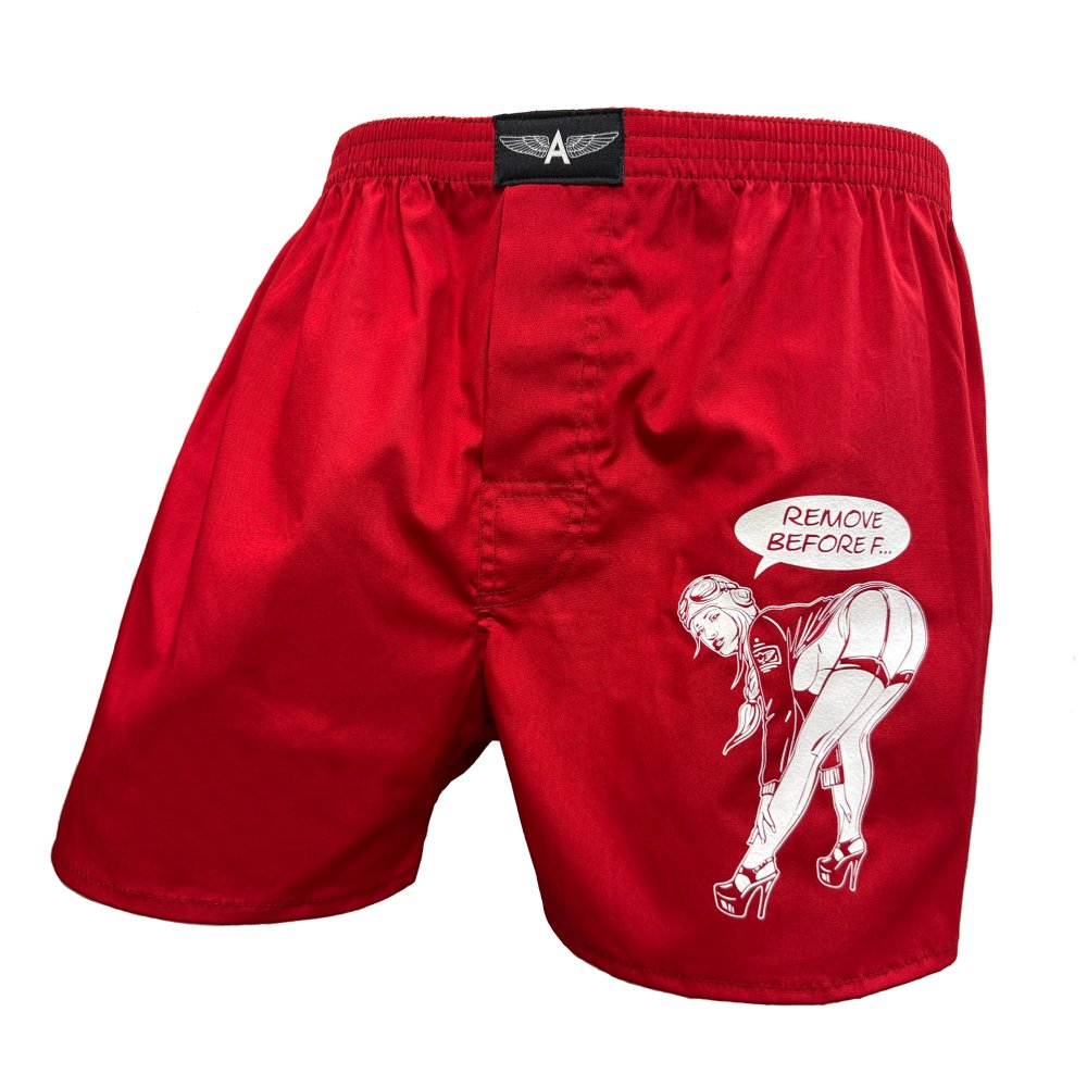 MADE BY STYX. Collectie ondergoed van Antonio. Rode korte broek met een gepassioneerde REMOVE BEFORE F... Meer